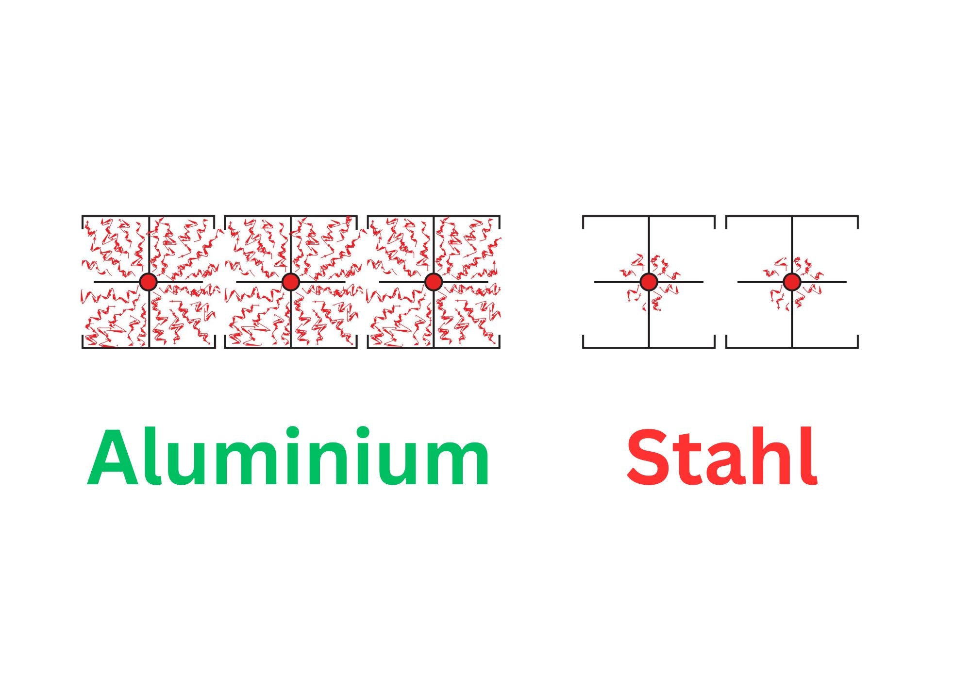 Die wesentlich bessere Wärmeleitfähigkeit (Aluminium hat eine 4-mal bessere Wärmeleitfähigkeit als Stahl). Sorgt für besseres Reaktionsverhalten und ist ein ausschlaggebender Faktor in Sachen Effizienz.